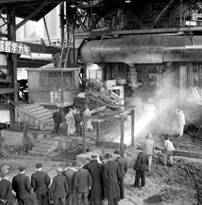 1953年3月,新中国第一座自动化炼铁炉——鞍山钢铁公司炼铁炉开始出铁。