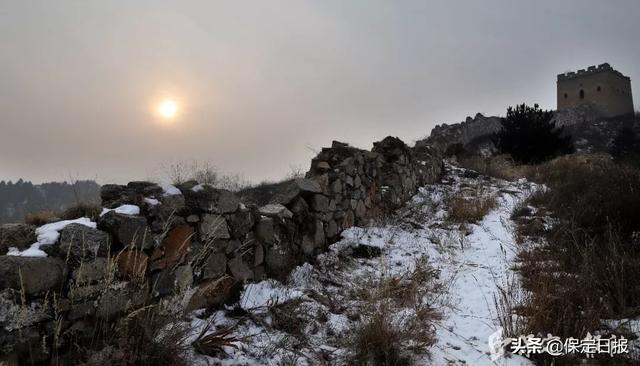 踏雪下山,回望崇山峻岭间连绵的城墙、挺拔的敌楼,在积雪装点下更加壮丽,更显豪迈。历经400多年风吹雨打,迎来新契机的涞源段明长城,终将再展风华。