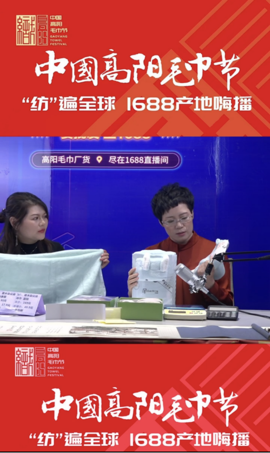 4月29日,高阳县政府与阿里巴巴旗下1688平台合作举办了线上“中国·高阳毛巾节”直播活动,致力“网络开拓市场,纺织走遍全球”,高阳县副县长蒋东方亲自走进直播间为产地嗨播。保定联通高阳县分公司为此次活动提供了强有力的通信保障。