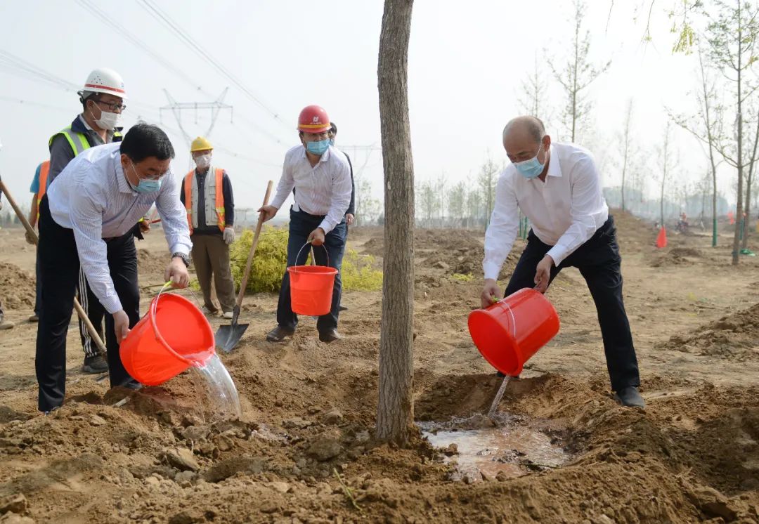 5月1日,市委书记聂瑞平、市长郭建英来到我市服务保障雄安新区建设重点项目现场,看望慰问广大建设者,向全市劳动者致以节日问候。这是聂瑞平和郭建英在雄安新区绿博园保定园项目建设现场,同大家一起挥锹填土、提桶浇水,播撒新绿。本报记者 高欣悦 摄影