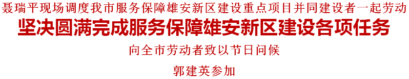 劳动创造美好生活,劳动者最光荣。5月1日,我市服务保障雄安新区建设重点项目工地依然热火朝天,建设者们奋战在工程第一线。市委书记聂瑞平来到项目现场,看望慰问广大建设者,向大家表示衷心感谢和崇高敬意,向全市劳动者致以节日问候。市长郭建英参加活动。