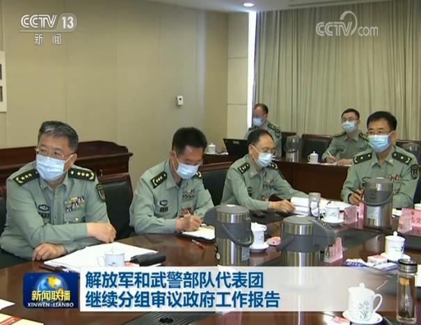 央视网消息(新闻联播):解放军和武警部队代表团23日继续分组审议政府工作报告。