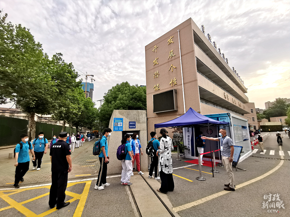 △5月20日,武汉市初三学生正式返校复课,需排队接受体温检测后进入学校。