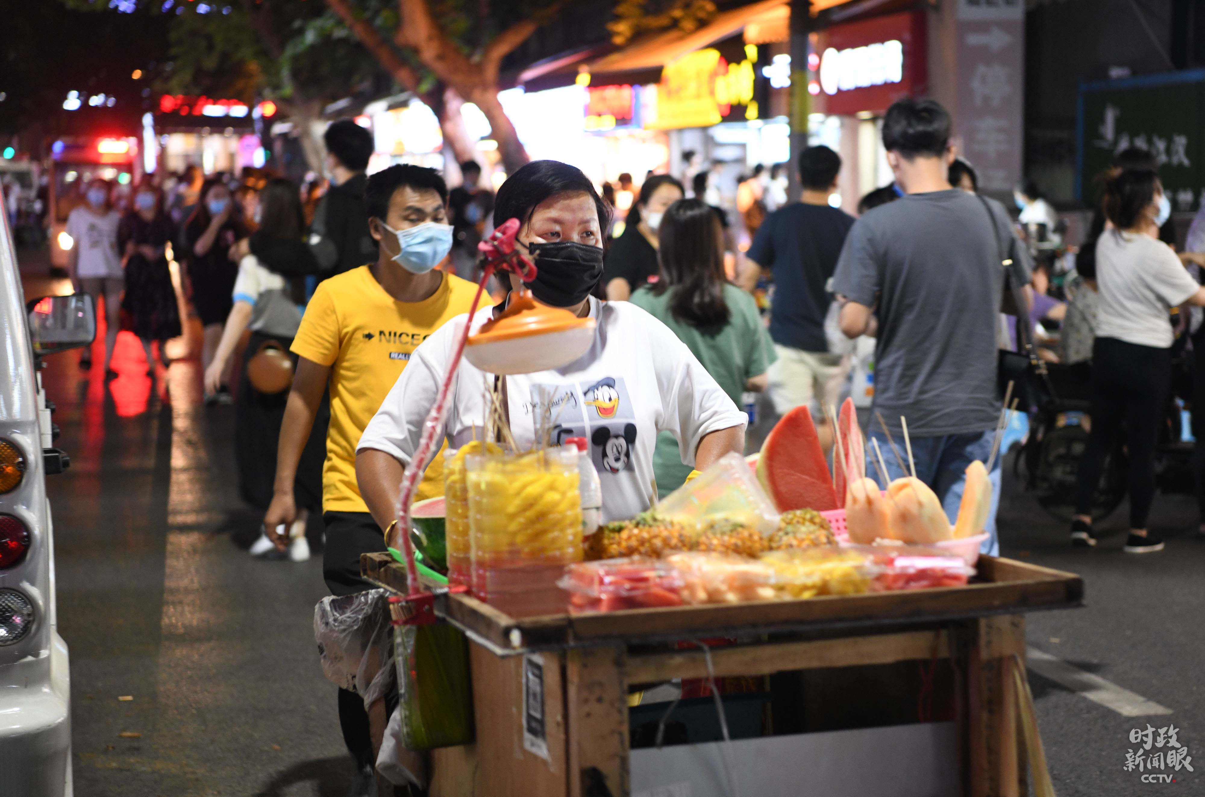 △这是22日晚的汉口商业街,逛街、吃宵夜的市民开始增多,城市“夜经济”在复苏。