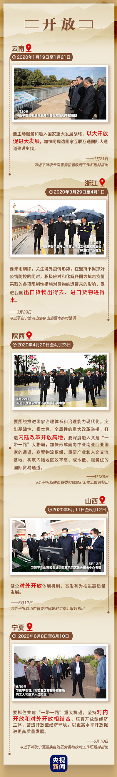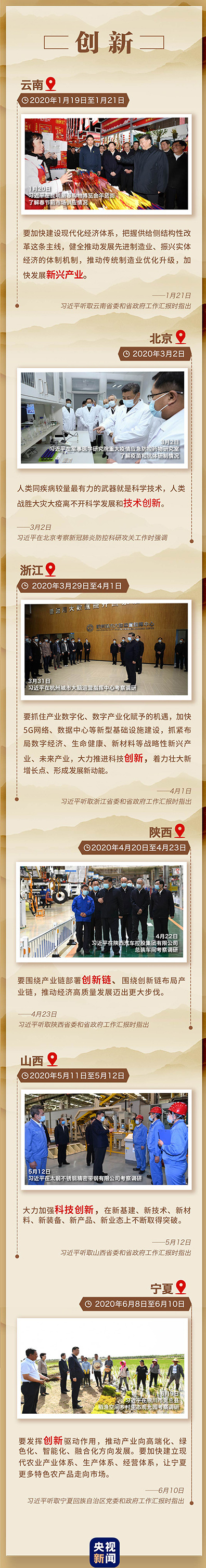 在今年上半年的考察调研中,习近平对坚持新发展理念作出了新的阐述,提出了新的要求。让我们沿着总书记的考察足迹,深入学习新发展理念。