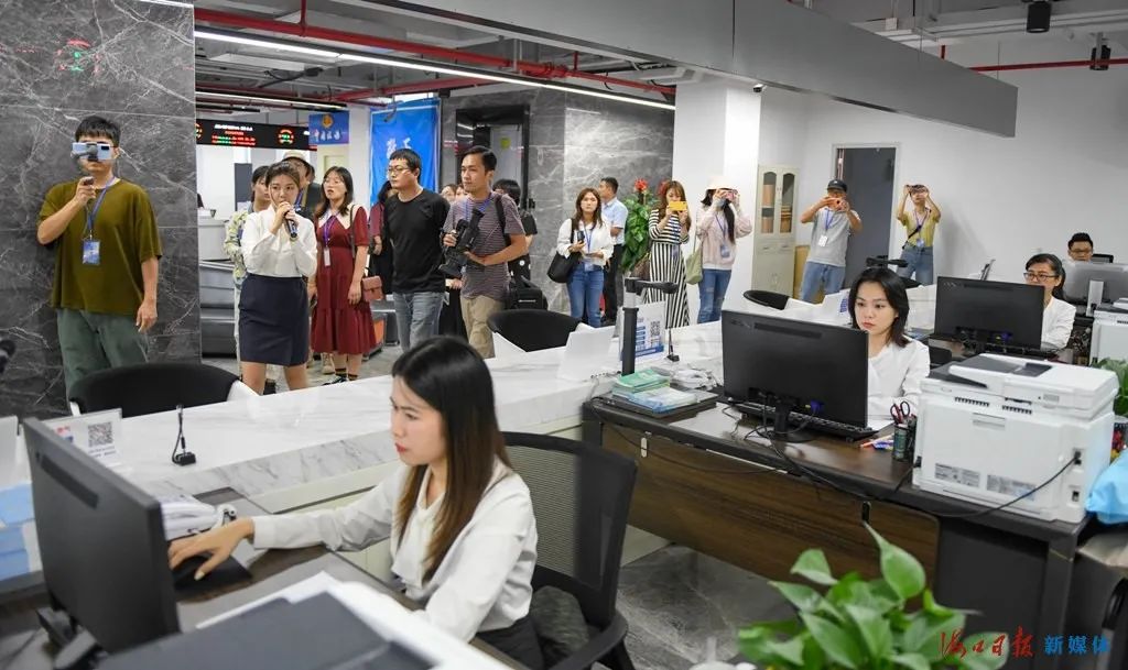 采访团参观海口江东新区政务服务中心。海口日报记者 王程龙 摄