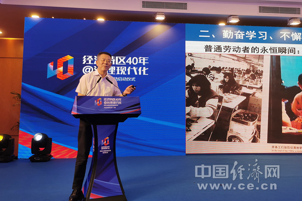 经济日报-中国经济网深圳8月25日讯(记者臧梦雅 邓浩 王蒙)8月24日,“经济特区40年@治理现代化”网络主题宣传活动在广东深圳启动。活动由中央网信办网络新闻信息传播局(网络理论传播局)主办,国家发展改革委地区经济司、国务院发展研究中心办公厅协办,广东省委网信办、福建省委网信办、海南省委网信办、新疆维吾尔自治区党委网信办和中国经济网承办。启动仪式后,哈尔滨工业大学(深圳)经济管理学院教授、深圳市人民政府原副市长唐杰作了题为《深圳四十年改革创新发展回顾》的主旨演讲。他在演讲中指出,从“经济特区”到“先行示范区”,改革开放已成为深圳最突出的特点和优势。