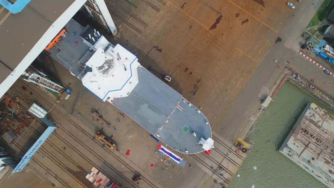 28日,我国最大海洋综合科考实习船“中山大学”号在上海长兴岛江南造船下水。中国科学院院士、中山大学校长罗俊为科考实习船命名剪彩,希望“中山大学”号承载起向海求索的使命与担当,承载起兴海强国的光荣与梦想,挺进深蓝,劈波斩浪,顺利平安。