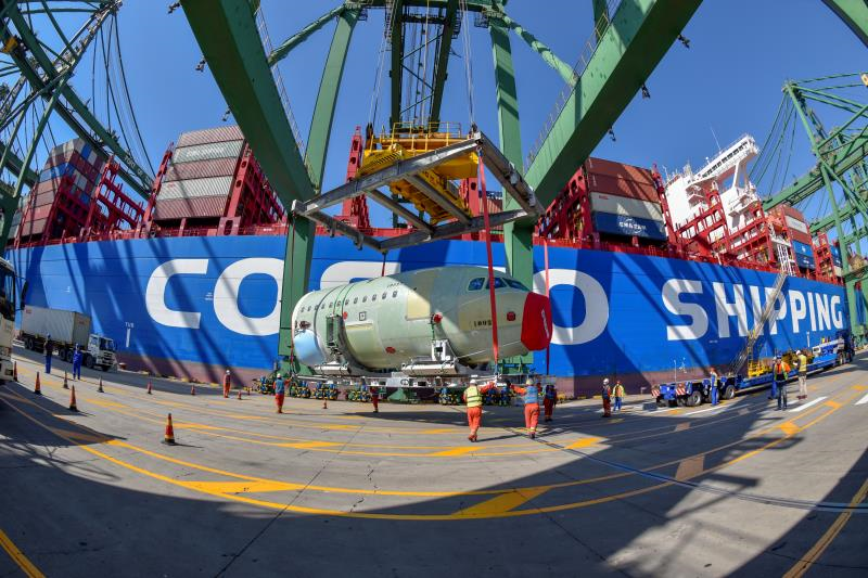 这艘货轮从德国汉堡而来,船上搭载着空客(airbus)飞机的大部件,不到一小时就完成吊装。几小时后,飞机大部件就迅速送到位于天津自贸区机场片区内的空客亚洲总装线,保障了津产空客A320和A330系列机型的顺利交付。