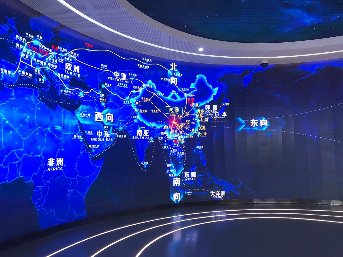 走进成都国际铁路港展示中心,映入眼帘的蓝色大屏幕展示了中欧班列(成都)连接的站点和详细的线路。2013年4月,首班中欧班列(成都)从成都国际铁路港始发,经过7年耕耘,已联接境外波兰罗兹、德国纽伦堡、荷兰蒂尔堡等30个城市,钦州、上海等境内15个城市,打造7条国际铁路通道和5条国际铁海联运通道。