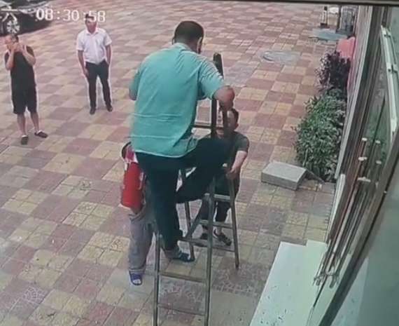 看到情况紧急,为了避免火势蔓延,刘辉赶紧跟乘客简单说明了一下情况,立即靠边停车拎起灭火器,快速冲向商铺,熟练地拔下保险销,对准上方的起火点迅速喷了起来,火很快被扑灭。随后,刘辉又爬上热心市民搬来的梯子,对准起火位置再次喷了起来。由于灭火及时,只是烧毁了牌匾的一小部分。
