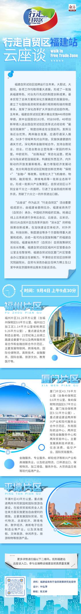 “云座谈”作为此次“行走自贸区”活动重要组成部分,由福建省委网信办、福建省商务厅(自贸办)承办,中国经济网组织实施。将通过线上云系统进行多地云会议、云座谈、云采访,探讨3大自贸片区在改革开放的“深水区”的积极探索创新成果,在加快建设实体经济、对外开放、科技创新、制度建设等多个方面取得重大进展和成绩,总结一批可向全国复制推广的福建自贸经验。福建省商务厅(自贸办)自贸政策研究处处长陈羲、福建自贸试验区福州片区管委会办公室主任黎发明、福建自贸试验区厦门片区管委会办公室副主任谢毅力、平潭综合实验区创新研究院副院长、自贸与深改办副主任林力博士及12家中央驻京媒体将出席本次座谈活动。
