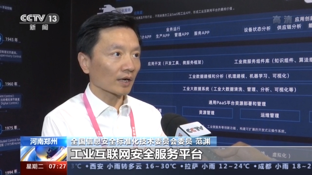 全国信息安全标准化技术委员会委员 范渊:保障工业互联网安全需要一站式工业互联网安全服务平台,把对工业企业安全咨询、评估、防护和应急响应能够一站式贯穿,并且真正建设能够服务于整个工业安全体系的全生命周期的云安全资源池。
