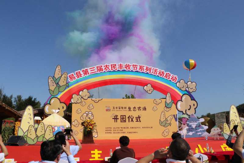 9月19日,易县第三届农民丰收节欢庆活动在恋乡·太行水镇拉开帷幕。非遗表演、花会巡游、蒙眼投掷大棒子、滑道拔河赛、扶贫农产品集市……丰富多彩的文化和农事体验活动为外地游客带来全新体验,展现出老区人民庆丰收、迎小康的幸福图景。同时,太行水镇玉米冒险村生态农场亮相,开园迎宾。
