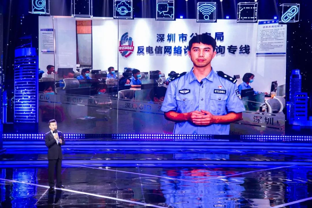 主持人现场连线深圳市公安局反电信网络诈骗中心工作人员。中国网信网 李晓尹 摄