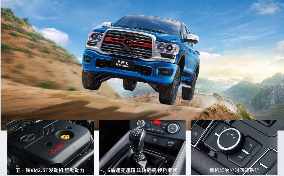此次大改款,领主外观内饰焕然一新,同时涉及动力、操控、内外装工艺等方面的21项升级,而底盘延续了其强悍越野的传统,因而也被企业官方定位为“高性能越野大皮卡”。