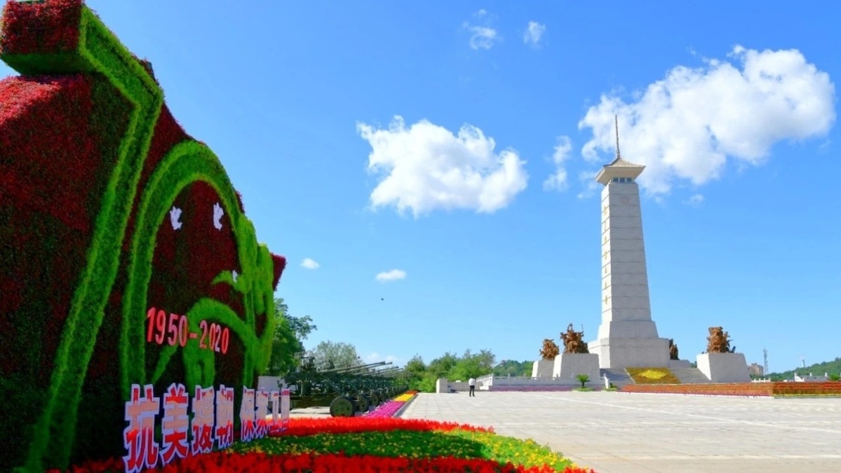 (图为由邓小平同志题名的抗美援朝纪念塔高耸云天 丹东供图)