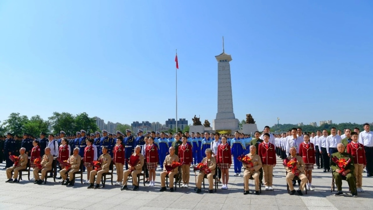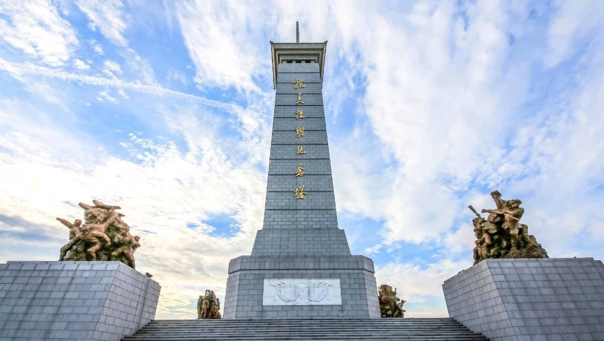 英华山上,镶嵌着邓小平同志题名的抗美援朝纪念塔高耸云天。
