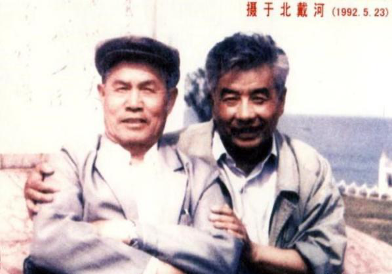 两个老战友:《我是一个兵》词曲作者陆原(左)、岳仑1992年在北戴河合影。