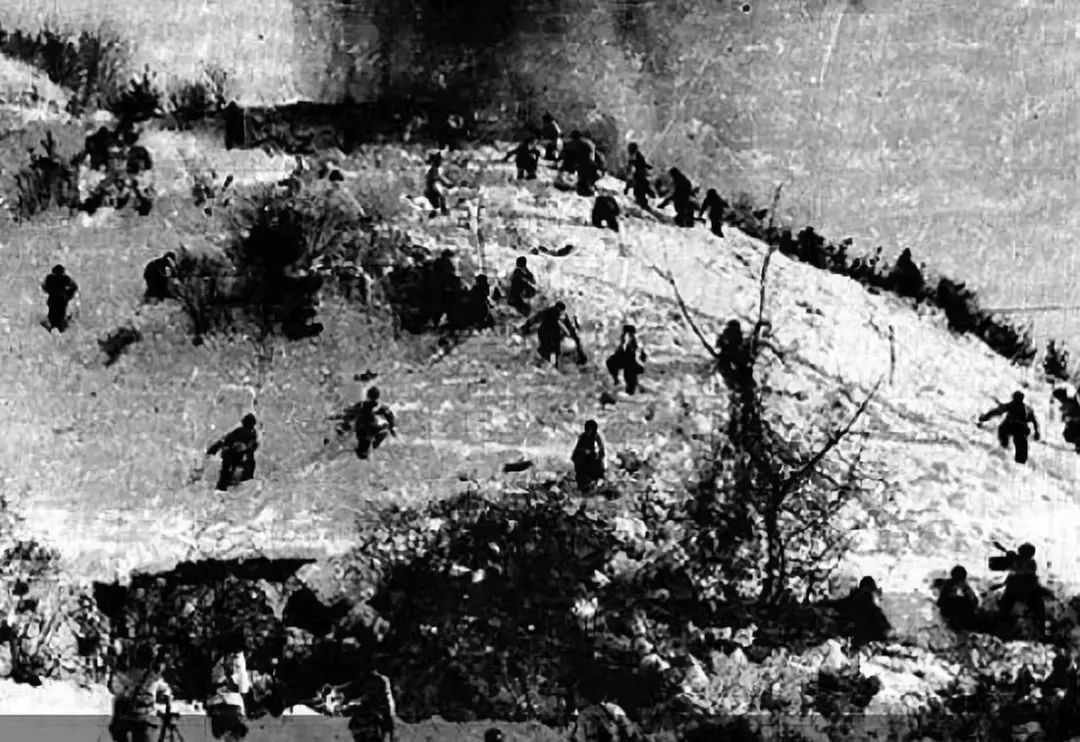 志愿军战士在上甘岭英雄阵地欢庆胜利