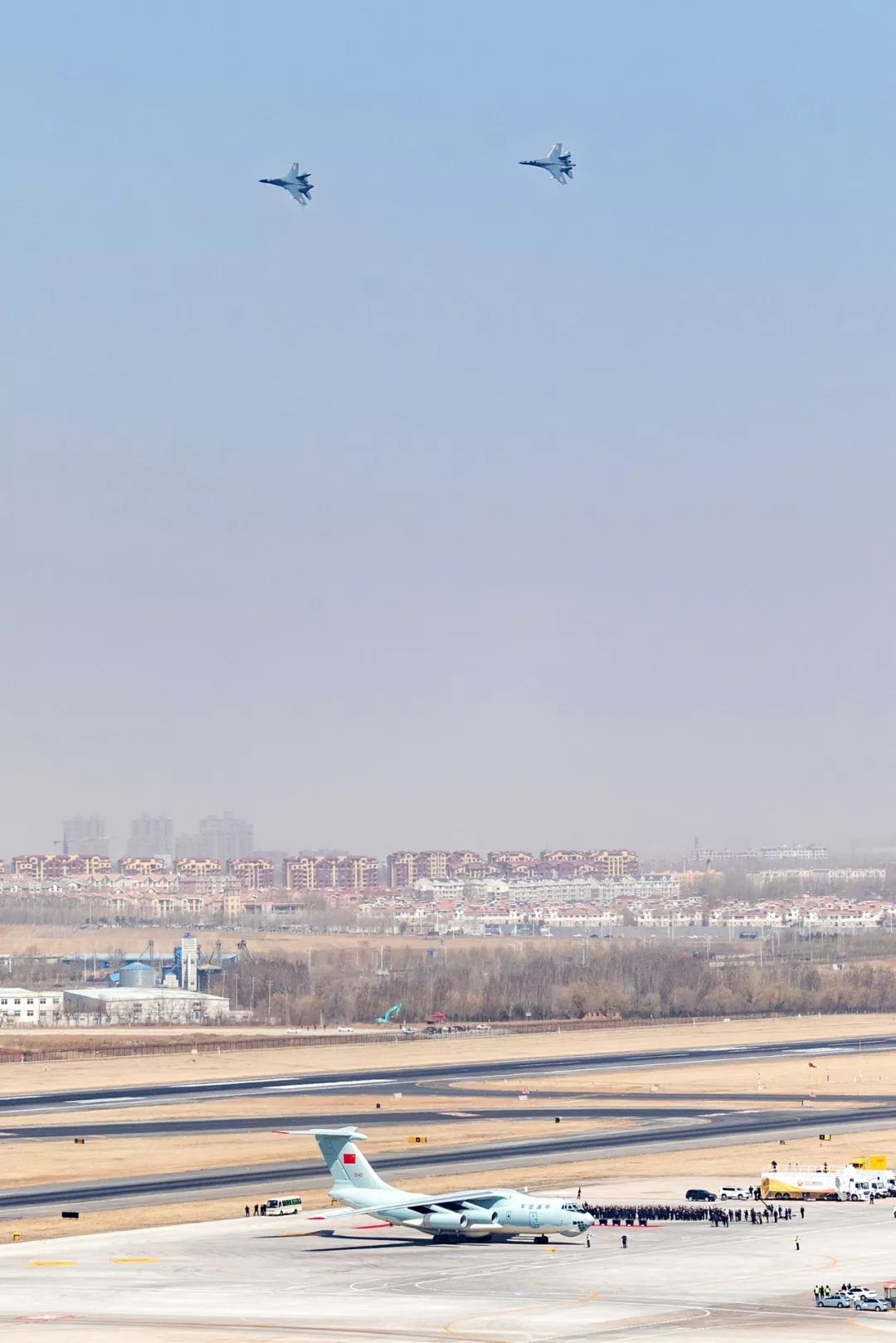 2019年4月3日,两架歼-11战机护航将10位抗美援朝志愿军烈士遗骸送达沈阳