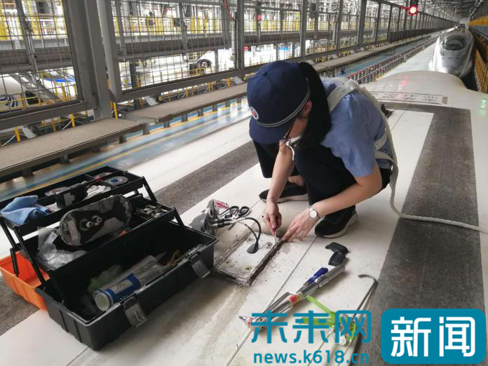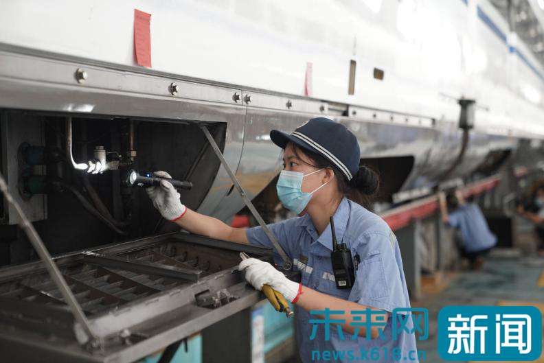 车间工作人员正在检修列车。(未来网记者齐越云 摄)
