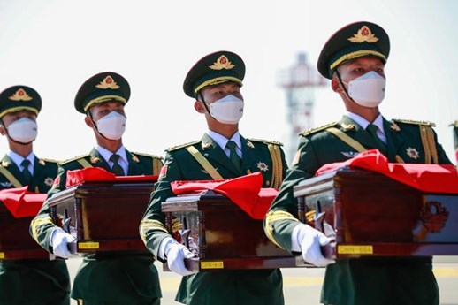 鉴往知来,70年前的号角声还在历史长河中回响,我们将接替你们,传承发扬抗美援朝精神,继续守护伟大的国家,守护人类的和平。在韩中国人民志愿军烈士遗骸保护相关工作是中韩双方友好合作交流的结果;未来,中国也将继续致力于双、多边和平合作,坚定不移地做世界和平的建设者、全球发展的贡献者、国际秩序的维护者。