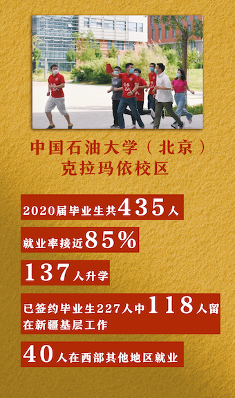 2020年7月7日,习近平给中国石油大学(北京)克拉玛依校区118名毕业生回信,肯定了他们“奔赴新疆基层工作,立志同各族群众一起奋斗,努力成为可堪大用、能担重任的西部建设者”的人生选择。