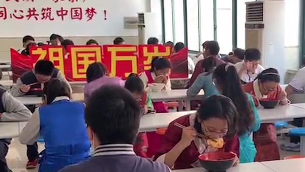 9月30日,上海晋元高级中学食堂里,大家纷纷捧起了一碗碗“国庆面”,庆祝祖国的生日。视频来源:澎湃新闻记者 张呈君 韩晓蓉 编辑 何羽茜(01:10)