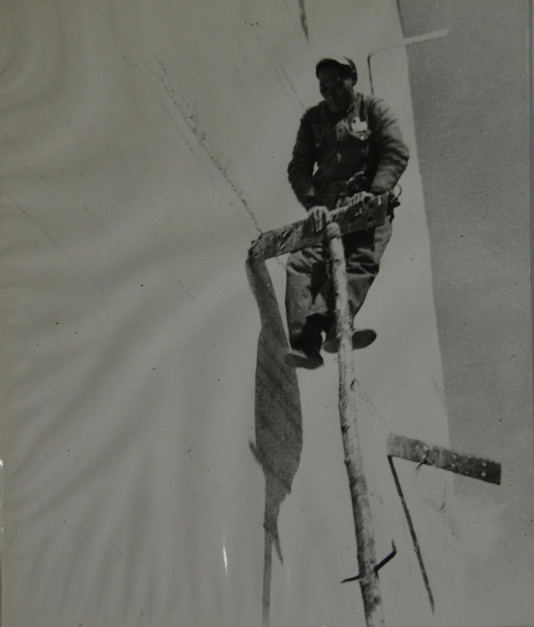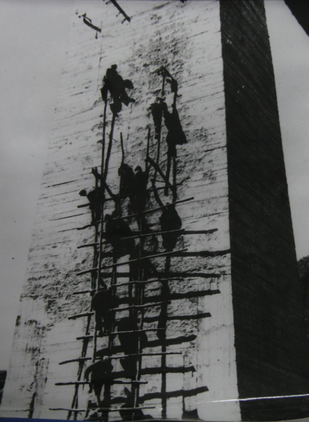 团领导批准后,杨连弟在全团注视下,手持长杆第一个攀登,冒着随时坠落的危险,经数小时奋战,终于登上桥墩开始施工。