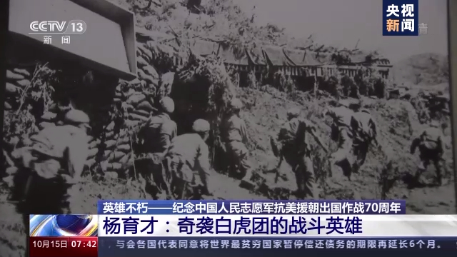 在中国人民革命军事博物馆,一面 “白虎团”团旗见证着中国人民志愿军的英勇事迹,其背后的故事被改编为现代京剧《奇袭白虎团》和电影《奇袭》,其中主人公“严伟才”的原型就是中国人民志愿军一级战斗英雄杨育才。