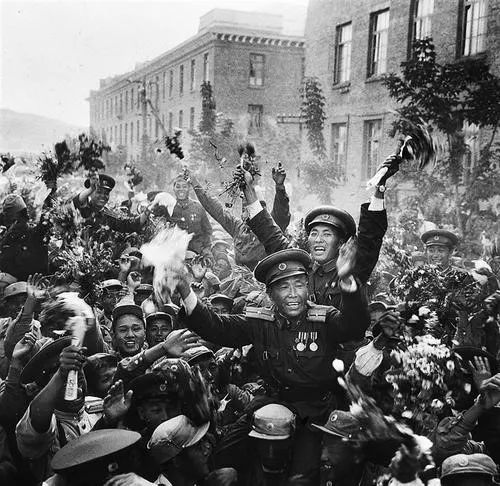 平壤街头朝鲜人民军热烈欢送中国人民志愿军