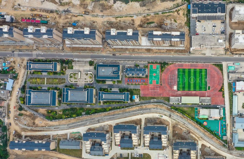 这是河北省阜平县龙泉关学校鸟瞰图(10月5日摄,无人机照片)。新华社发