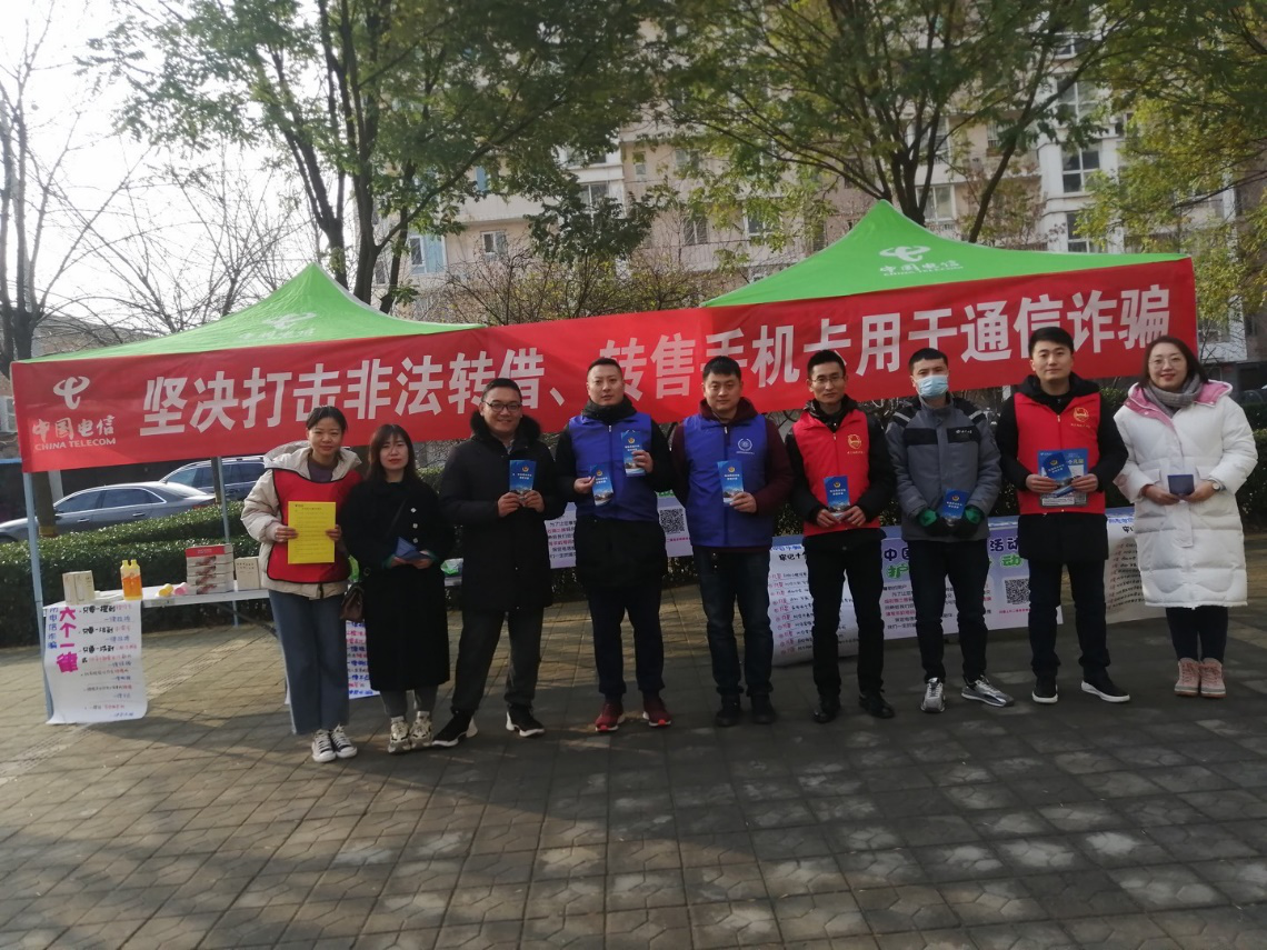 为提高我市社区居民的防诈骗意识和防范能力,12月1日上午9点,由中国电信保定分公司西南区业务发展部装维工程师、金牌营业员、客服主管等成员组成的护网团队走进阳光佳苑社区,向社区居民普及宣传反通信诈骗知识。