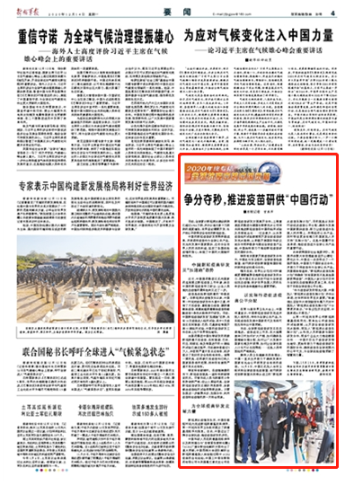 曙光在前,世界比以往任何时候都更需要凝聚助推新冠疫苗研发的合力,而中国正在以实际行动为全球团结抗击疫情、保护世界各国人民的生命安全和身体健康作出重要贡献。