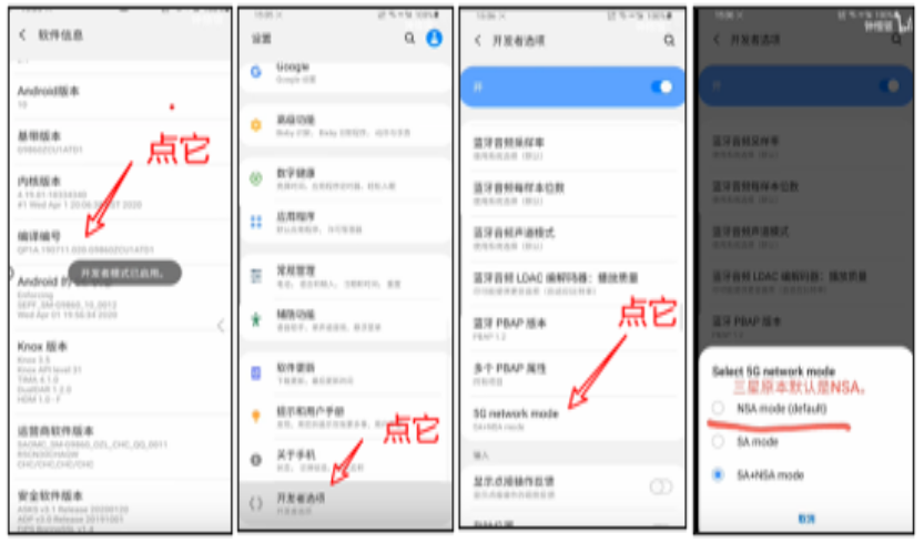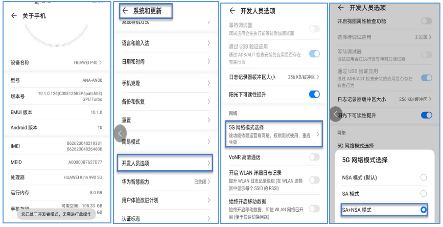 (3)设置-开发者模式选项-5G network mode-选择SA+NSA模式