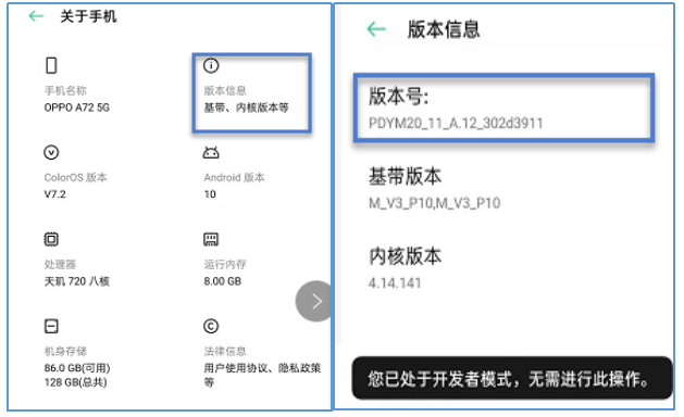 (2)设置-关于手机-版本信息-多次点击版本号,提示已处于开发者模式