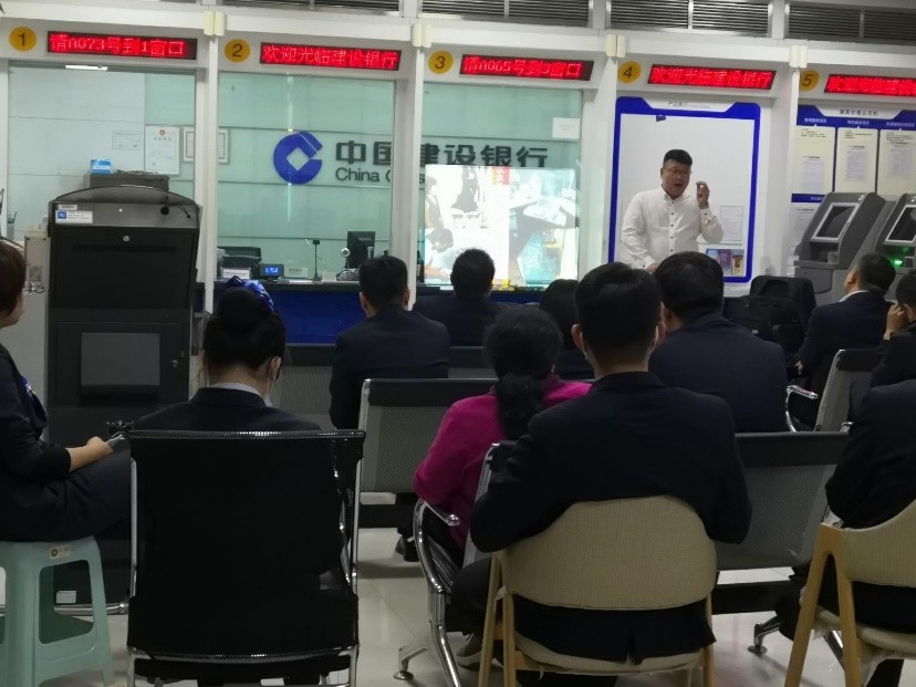本报讯 近日,建行保定望都支行特邀市消防队宣讲员到营业厅对全行员工开展消防知识培训。