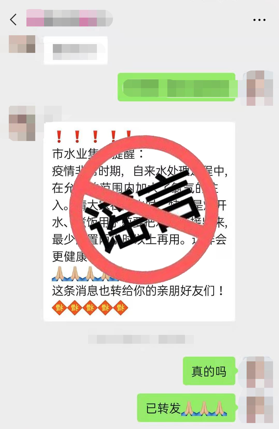 近日,有人再次通过微信等渠道散布“市水业集团提醒:疫情非常时期,自来水处理过程中,在允许的范围内加大了氯气的注入。请大家在用水时,特别是烧开水、煮饭用水前要把水提前接出来,最少静置两小时以上再用。这样会更健康!这条消息也转给你的亲朋好友们!”不实信息。