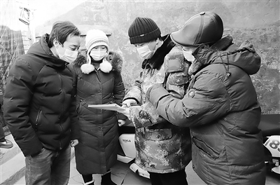 1月11日,保定日报社驻四库社区的防控人员正在对外来人口进行信息登记。当前,省内疫情形势严峻,保定日报社组织53名工作人员下沉一线,分赴南关各社区开展疫情防控工作。 保定日报记者 王栋 摄