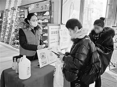 元旦过后,疫情形势再度紧张,公共场所的客流明显减少,茂业中心店防疫升级,各楼层弥漫着消毒水的味道,员工均佩戴着口罩。据李向红介绍,现在测温的基础上还要扫3个码,老人孩子不能领取的,需要家人代领。“目前没有遇到发热的,有一次扫出了黄码,克制着内心的紧张,我们仔细询问了他去过的城市、区域,后来发现是信息填写有误导致的,虚惊一场。”