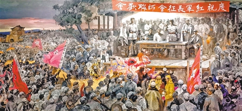 图① 红军长征胜利纪念馆珍藏的一幅庆祝红军长征会师联欢会的油画作品。