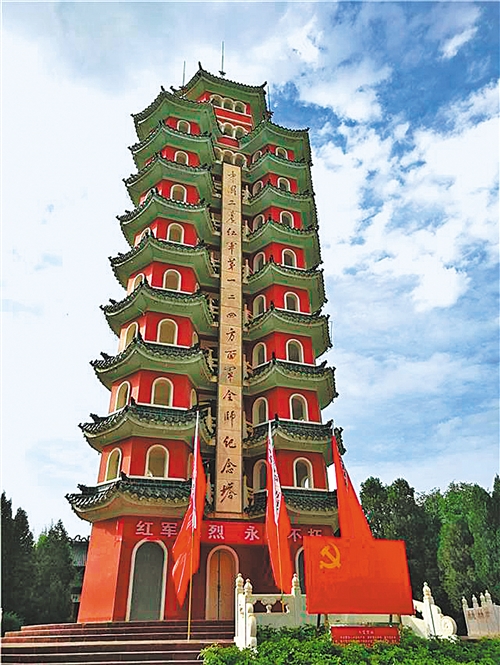 图③ 中国工农红军第一二四方面军会师纪念塔。 本报记者 李琛奇摄