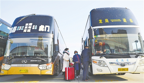 2月17日,湖南省永州市道县汽车北站,旅客准备上车。当日,永州市迎来务工返程小高峰。该县各车站“保运”“防控”两手抓、两不误,为返程人员提供交通运输保障。 何红福摄