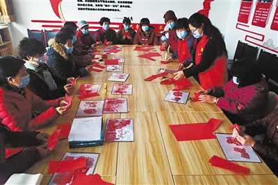 “三八”妇女节来临之际,高碑店市军城街道崔中旺村,组织妇女与驻地军嫂欢聚一起学习剪纸艺术。