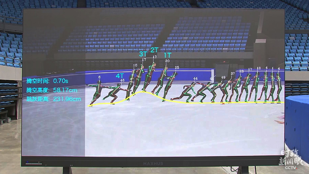 △花样滑冰队借助回看实时录像方式,了解队员腾空时间、高度和跳跃距离,提高备战效果。(总台央视记者钟锐拍摄)