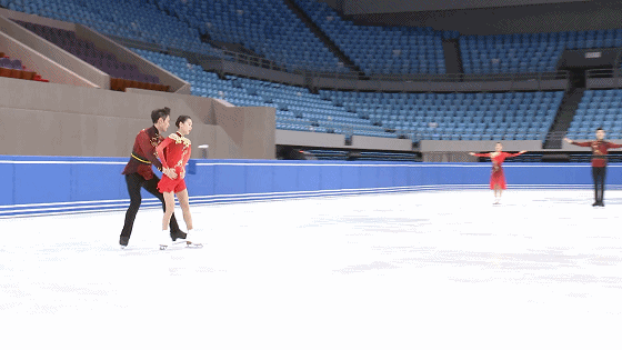 △国家花样滑冰队双人滑队员彭程/金杨训练现场(总台央视记者石伟明拍摄)