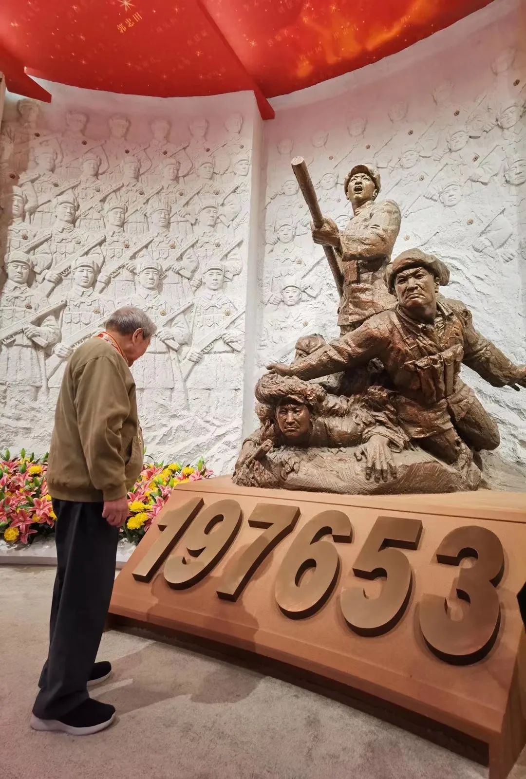 有个雕像底下写着197653,是牺牲的烈士人数。老人看到以后伤心落泪,“牺牲的太多了”。