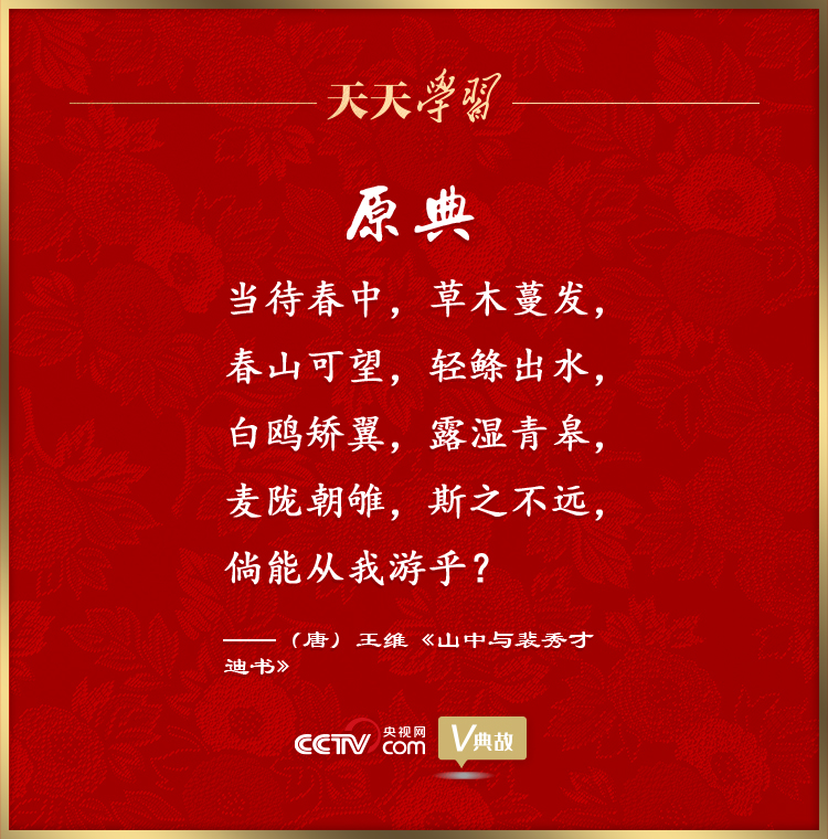 党的十八大以来,习近平总书记多次在腊月二十九举行的春节团拜会上发表重要讲话,盘点旧岁、谋划新年,向全国各族人民、港澳台同胞和海外侨胞拜年,并致以美好的新春祝福。在讲话中,习近平总书记频频引用具有新春节令特点的古代经典诗文名句抒发情怀、畅想未来。这些诗文名句如春风化雨润人心田、暖人心扉,激励着亿万人民在新的一年里追梦前行。