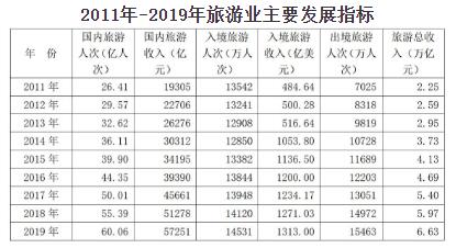 近十年来,随着中国经济的发展,旅游业也在快速发展当中。国内旅游人次,从2011年的26.41亿人次,到2019年增长到60.06亿人次,国内旅游收入到2019年达到了57251亿元。